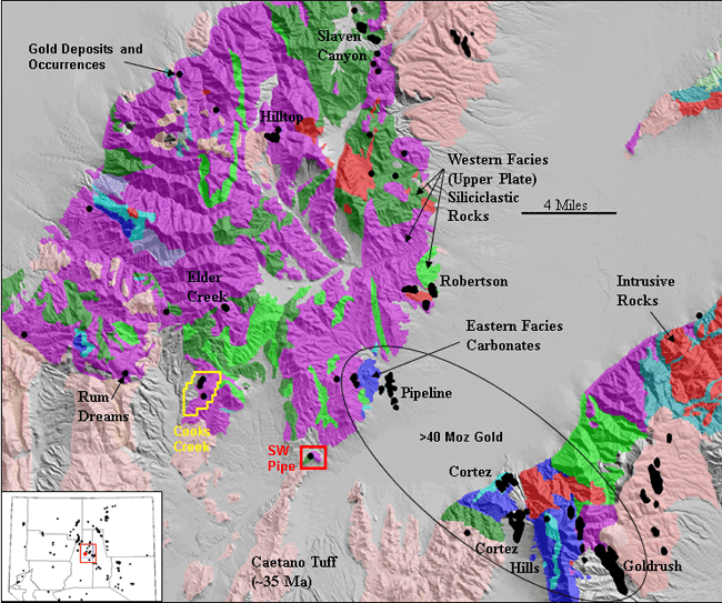Figure 1 – Location of SW Pipe to other Central Nevada Gold occurrences